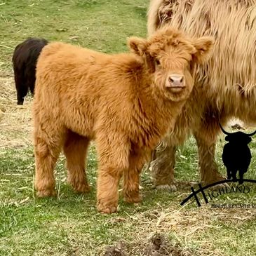 This little heifer is gonna be hairy! She is like Beauty and The Beast in one package! Her dam is a beautiful dun that has the best hair all year round. Sire is Chasin, our white highland bull.